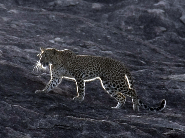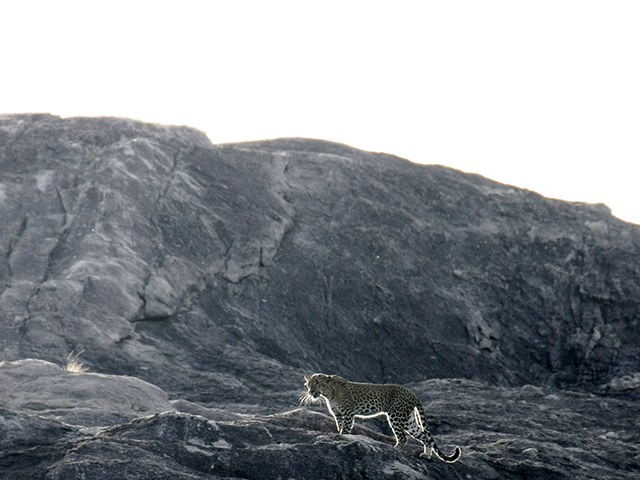 Kada je prešao put, mislili smo da je zašao u šumu i ga više nećemo videti. Pomerili smo se džipom i neočekivano ga ugledali na steni ispred, jasno kao na nekom filmskom platnu. Moćna, prelepa, retka zverka na samo nekoliko metara od nas.