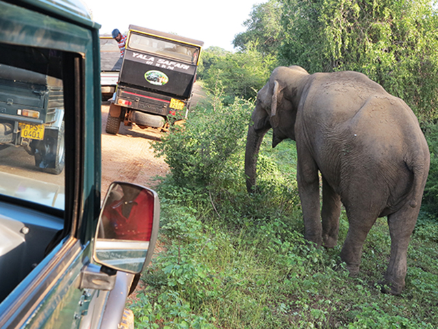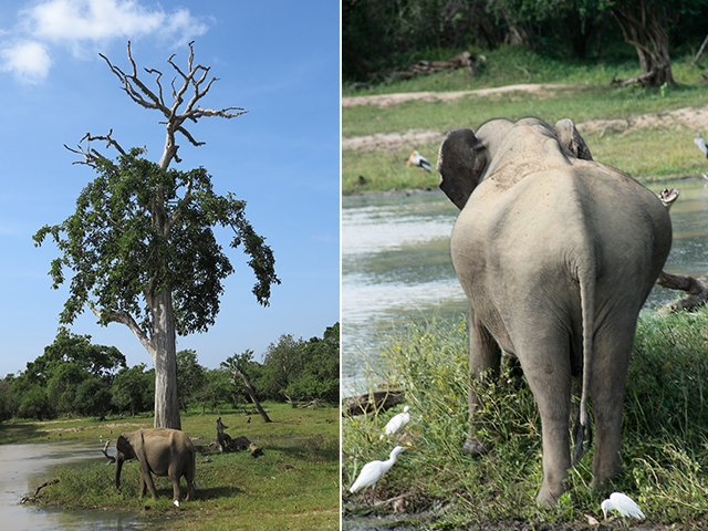 U daljini vidimo planinu Panangala rock ili Elephant rock koja liči na slona. Nalin nam pokazuje ptice i korkodile koje mi isprva uopšte ne primećujemo. I duhovito kaže – Ovaj sa otvorenim ustima čeka bele turiste! Koliko bi dugo turista opstao ovde? pitam, na šta iskusni spoter koji je svaki dan u džungli kaže – Kolima sat vremena, peške deset minuta.