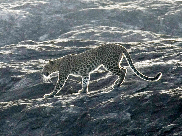 Prvo srećemo razne ptice, jelene i divlje svinje. Nalin kaže da ćemo videti još puno životinja kasnije, i da nam je sada najvažnija misija da pronađemo leoparda. Jel to ok? pita. Ima li lepše rečenice za jednog pustolova! Leopard je superstar. Uspešnost ovog safarija se meri time da li ste videli ovog lepotana ili ne. Ali sa ovom mačkom se nikada ne zna… Iskusniji tvrde da ako ga ne vidite do 8 ujutru sve je manja šansa, jer je toplije i on drema negde u hladu i sklanja se od sve veće gužve.
