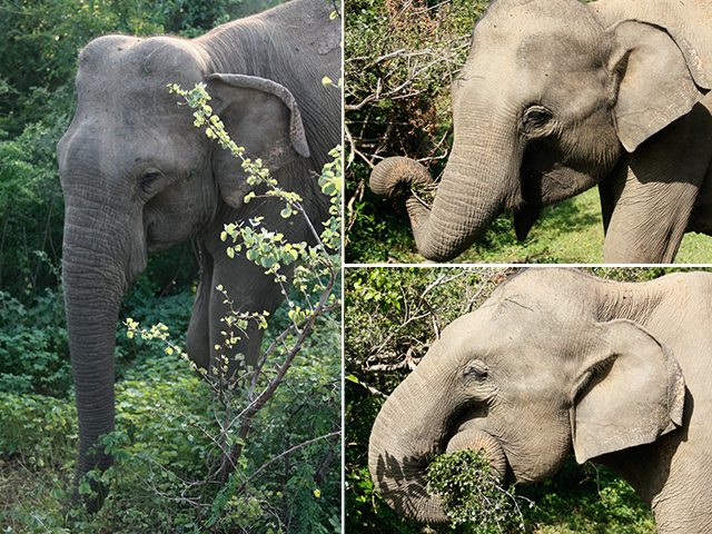Park je rezervat slonova i ima ih na stotinu. Uglavnom su blizu vode. Nailazimo na prvog koji ne obraćajući pažnju na nas mirno brsti žbun.